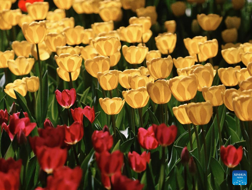 This photo taken on April 10, 2026 shows tulip flowers at Zhongshan Park in Beijing, capital of China. (Xinhua/Xing Guangli)