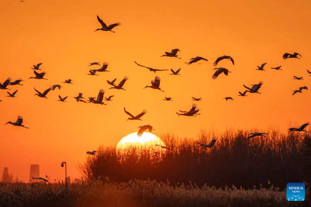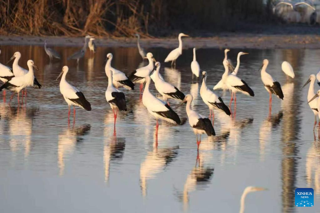 TIANJIN, April 12 (Xinhua) -- As spring returns, large numbers of migratory birds are stopping over at the Qilihai Wetland in north China's Tianjin Municipality on their northward journey, a testament to years of dedicated restoration work.
