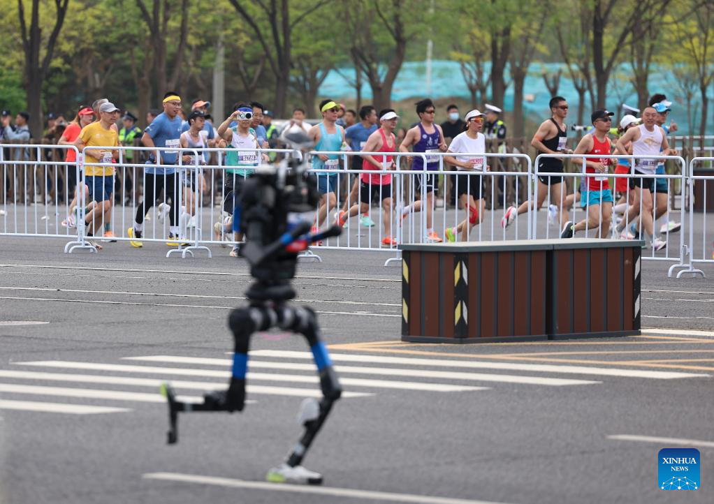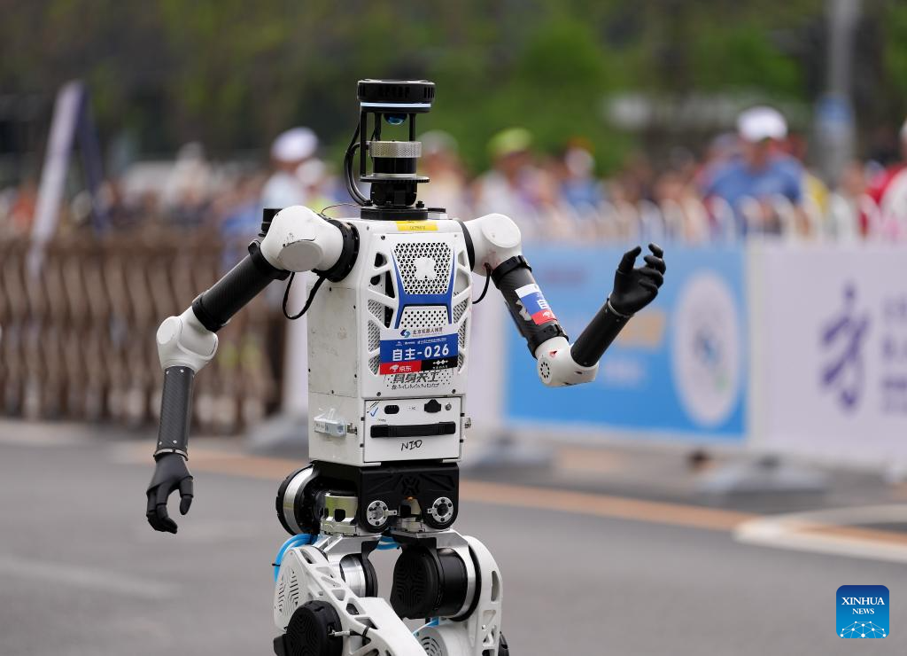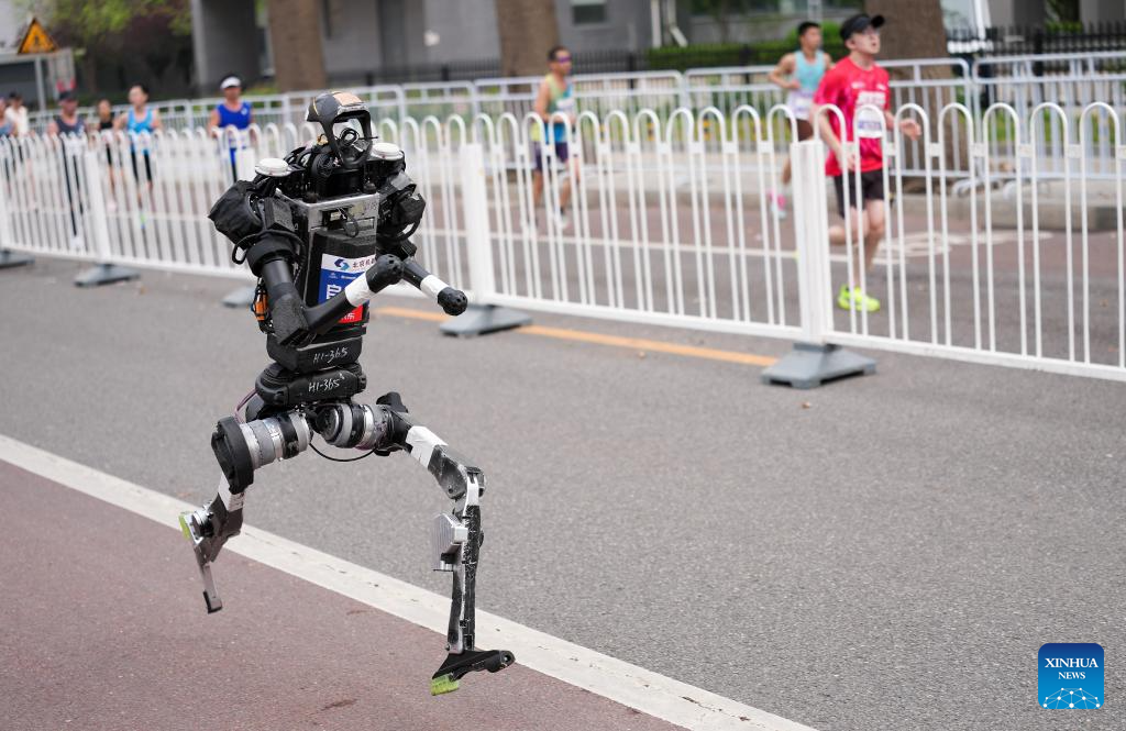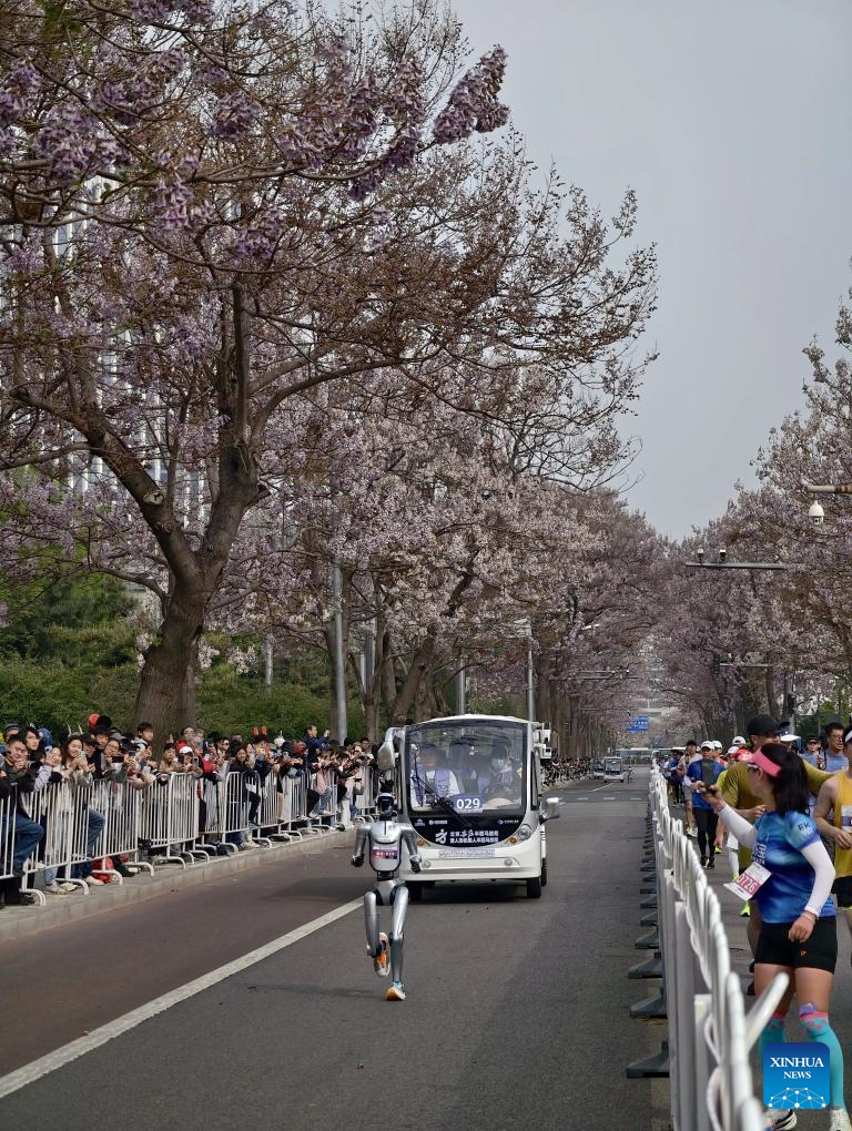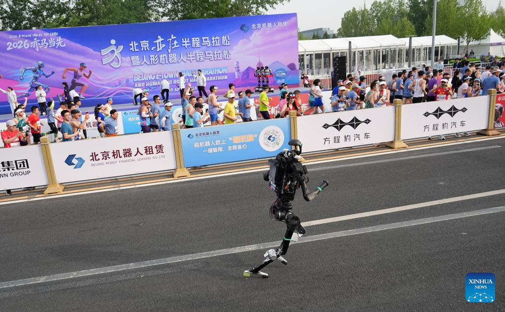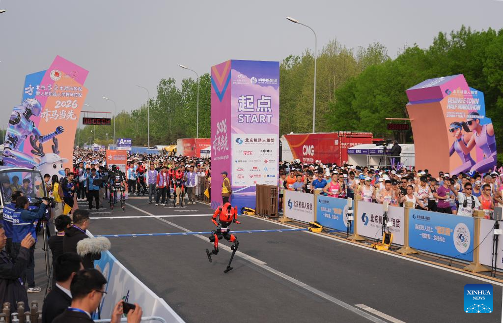 BEIJING, April 19 (Xinhua) -- Humanoid robot named "Flash" from Shenzhen Honor Smart Technology Development Co., Ltd. claimed victory at the 2026 Beijing E-Town half-marathon with a time of 50 minutes and 26 seconds in autonomous navigation on Sunday, beating the human world record of 57:20.