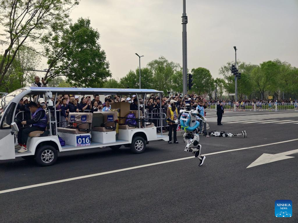 In the second edition of the event on Sunday, humanoid robots made remarkable progress and demonstrated technological breakthroughs to become faster and more stable in running. The number of participating teams increased to more than 100 this year, including participants from Germany, France and Brazil.