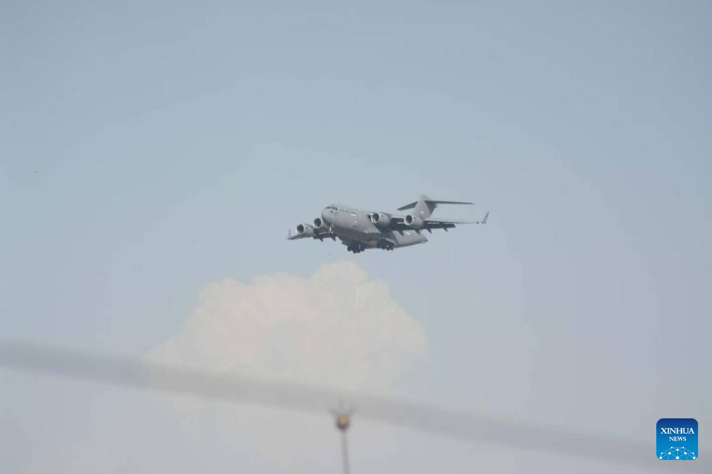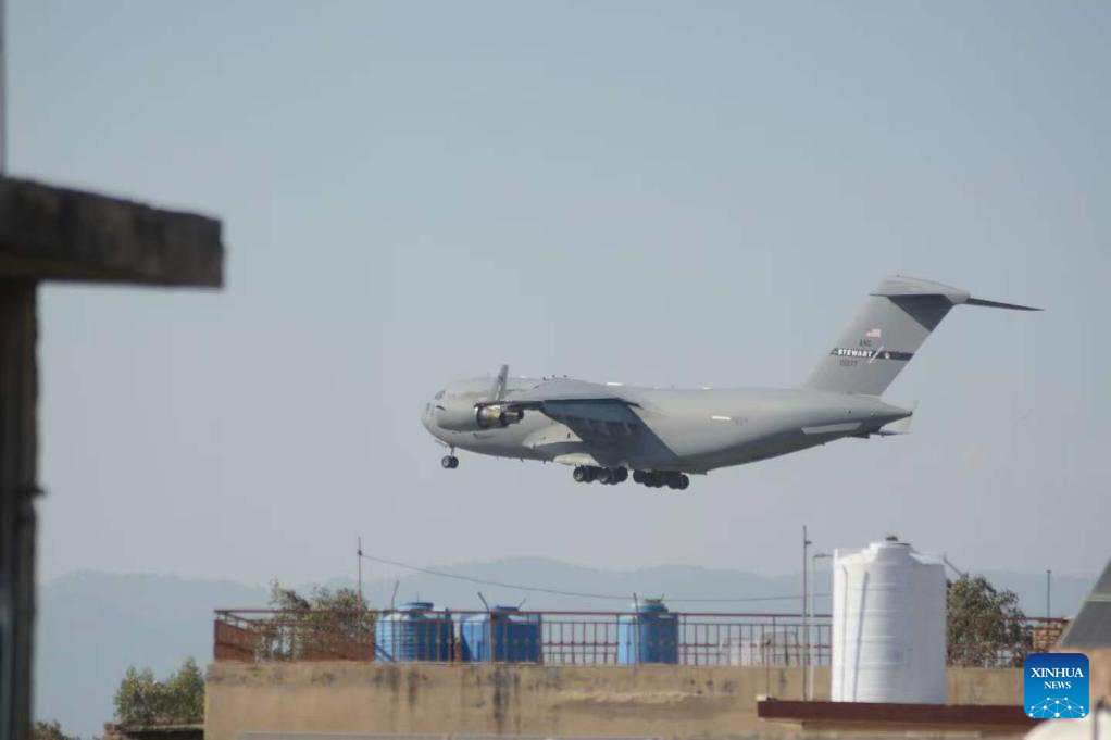 A U.S. military aircraft flies over an area near the Nur Khan airbase in Rawalpindi, Pakistan, on April 19, 2026. Pakistan has placed its capital Islamabad and the neighboring garrison city of Rawalpindi on high security alert ahead of the expected second round of U.S.-Iran talks. (Xinhua)