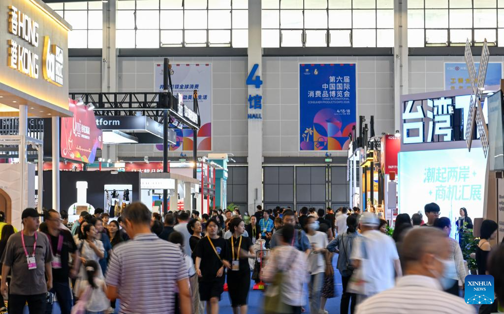 People visit the sixth China International Consumer Products Expo (CICPE) in Haikou, south China's Hainan Province, April 18, 2026. The sixth China International Consumer Products Expo (CICPE), a key gateway into China's vast consumer market and a platform for China to offer more quality consumer products to the rest of the world, concluded in the tropical island province of Hainan Saturday. (Xinhua/Yang Guanyu)