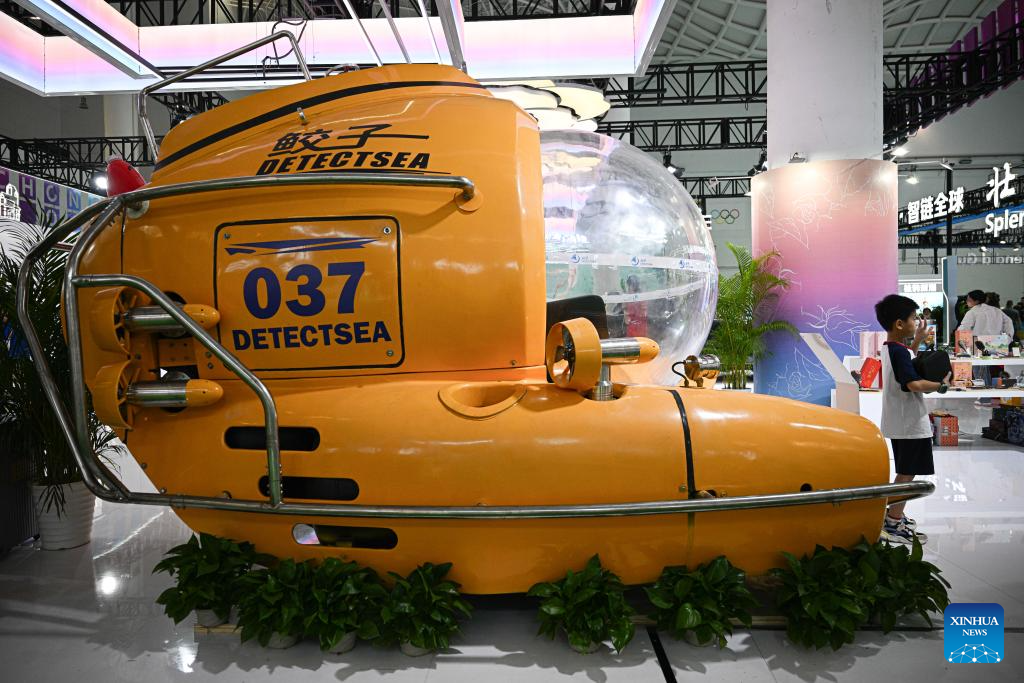 This photo taken on April 18, 2026 shows a submarine exhibited at the sixth China International Consumer Products Expo (CICPE) in Haikou, south China's Hainan Province. The sixth China International Consumer Products Expo (CICPE), a key gateway into China's vast consumer market and a platform for China to offer more quality consumer products to the rest of the world, concluded in the tropical island province of Hainan Saturday. (Xinhua/Pu Xiaoxu)