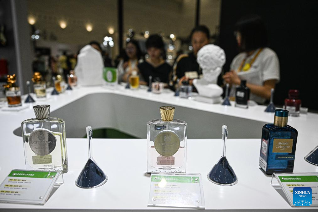 People select perfumes at the sixth China International Consumer Products Expo (CICPE) in Haikou, south China's Hainan Province, April 18, 2026. The sixth China International Consumer Products Expo (CICPE), a key gateway into China's vast consumer market and a platform for China to offer more quality consumer products to the rest of the world, concluded in the tropical island province of Hainan Saturday. (Xinhua/Pu Xiaoxu)
