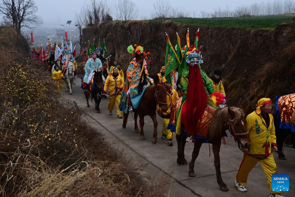 Performers attend a Shehuo parade in Huanghuayu Village in Longxian County of Baoji City, northwest China's Shaanxi Province, March 2, 2026.