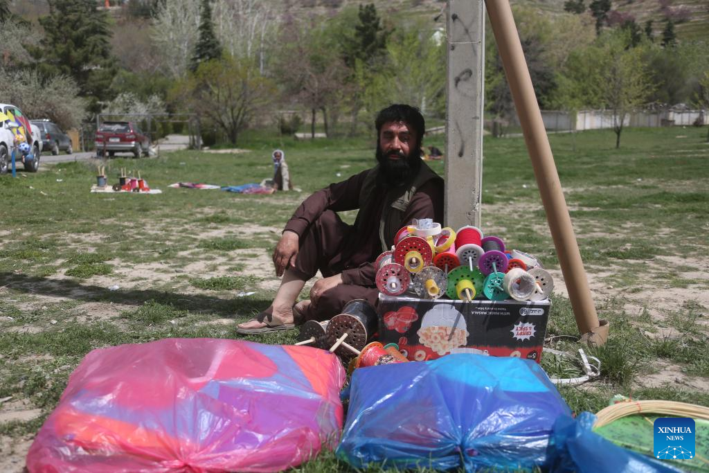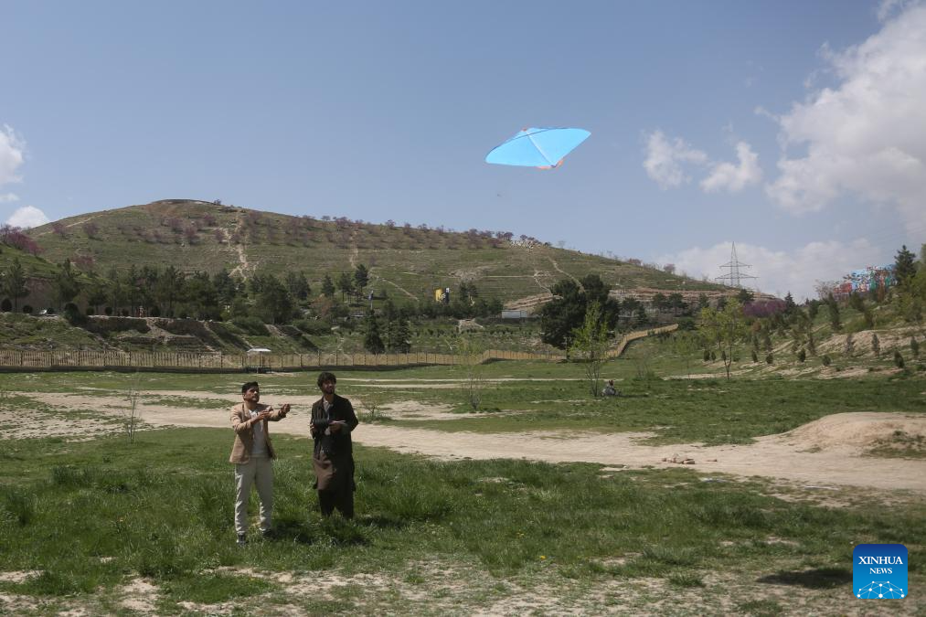 KABUL, April 17 (Xinhua) -- Impatiently waiting for his turn to run his colorful kite on a ground in Qarga locality outside the capital city Kabul, Mohammad Mahfoz Haroni whispered with emotion that since childhood he loves kite flying the kite almost every day.