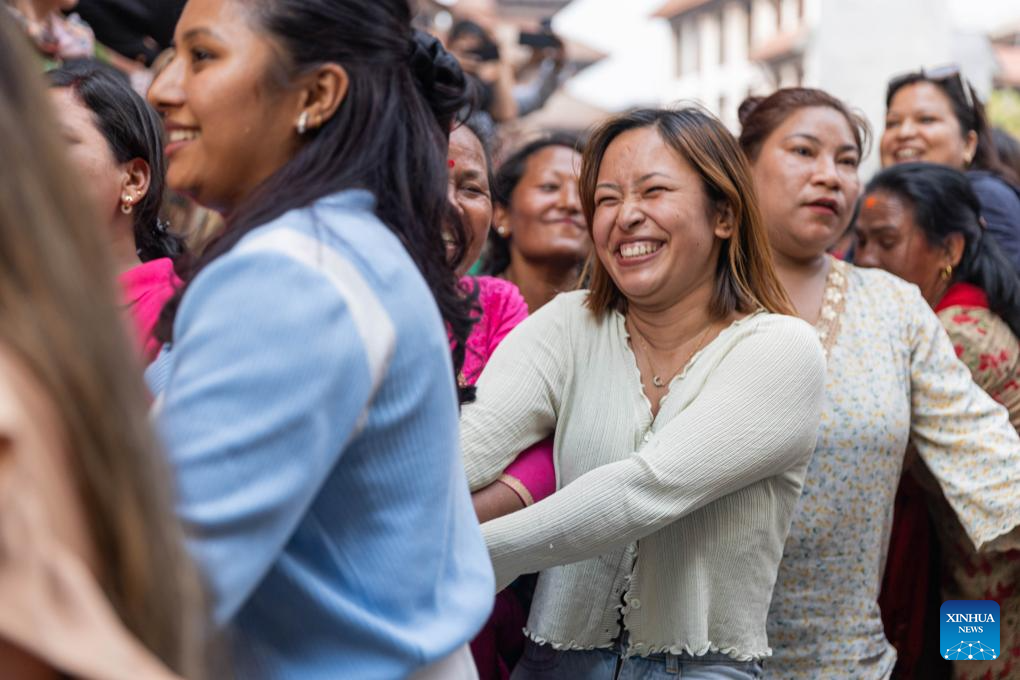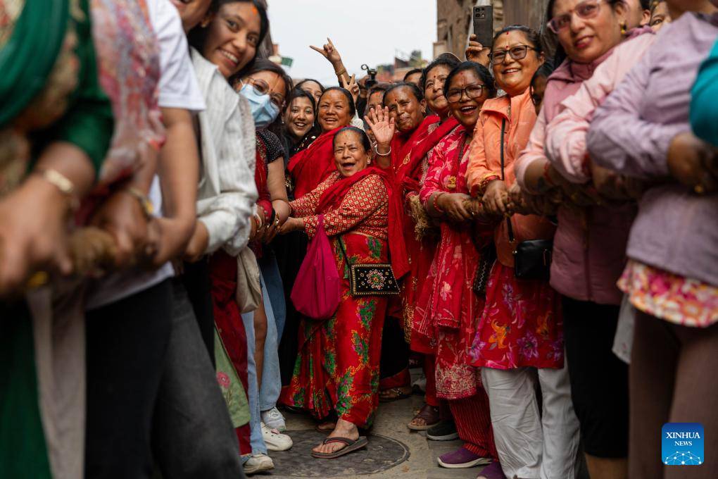Women pull the chariot of Lord Bhairav during the celebrations of Bisket Jatra festival in Bhaktapur, Nepal, on April 16, 2026. The festival is celebrated to welcome the Nepalese New Year and the beginning of spring in Nepal. (Photo by Sulav Shrestha/Xinhua)