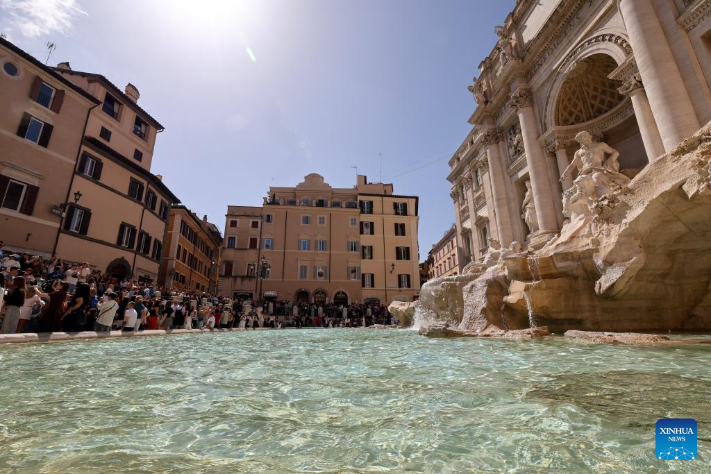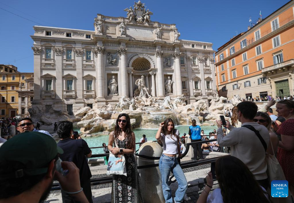 Tourists visit the Trevi Fountain in Rome, Italy, April 17, 2026. (Xinhua/Li Jing)