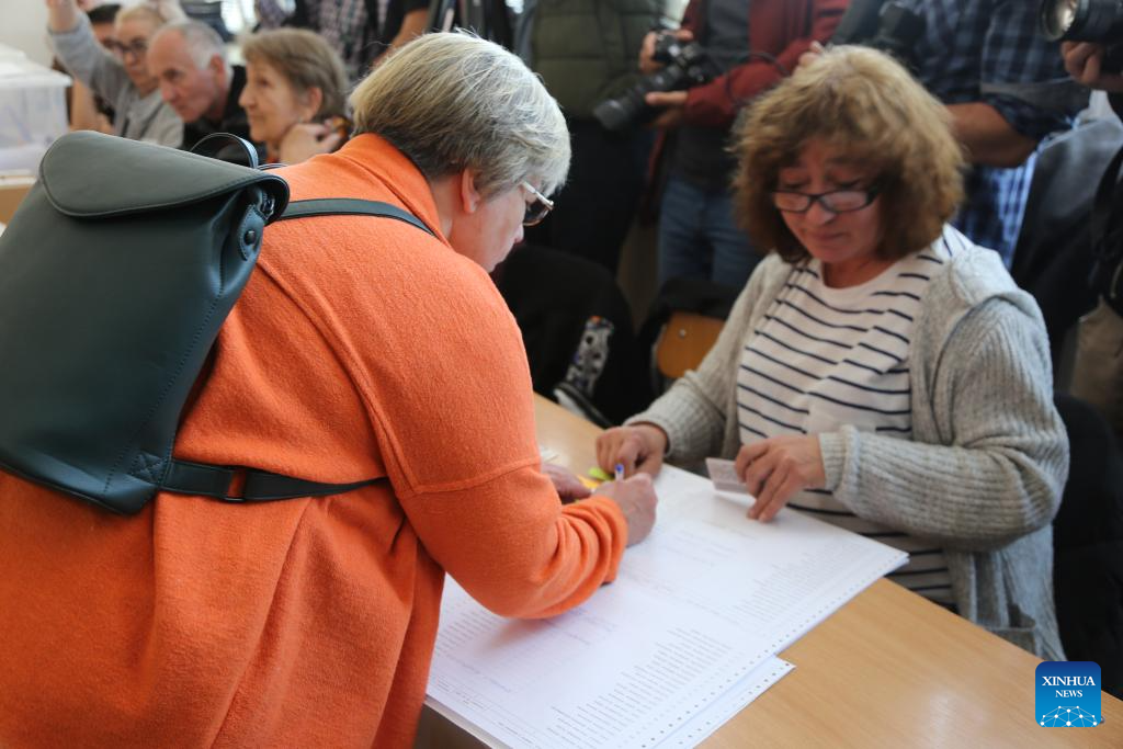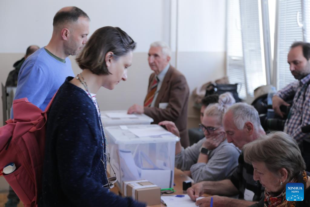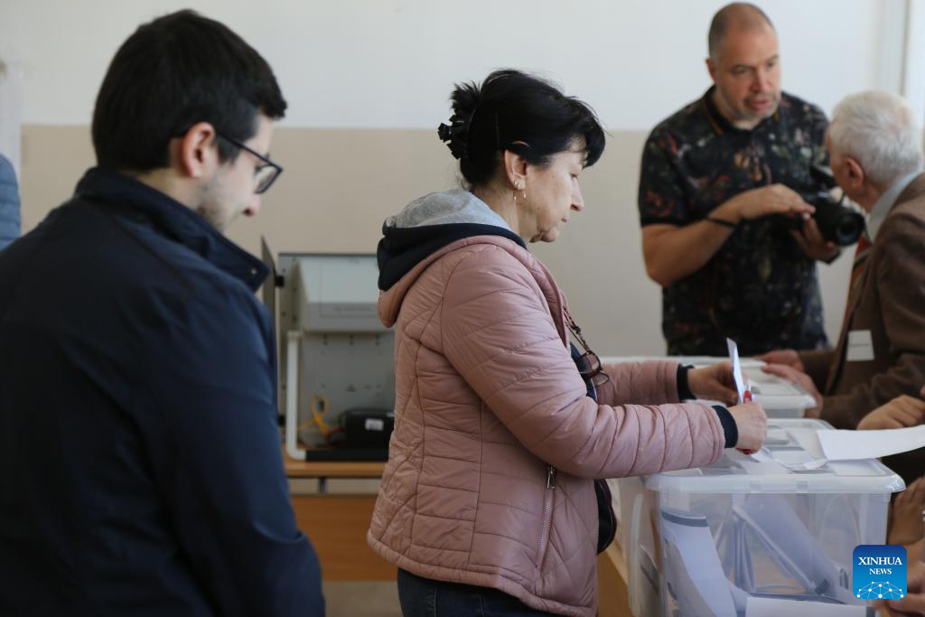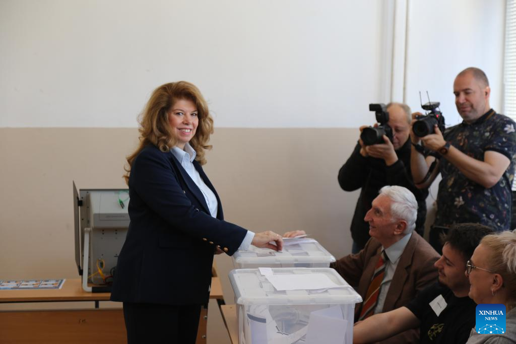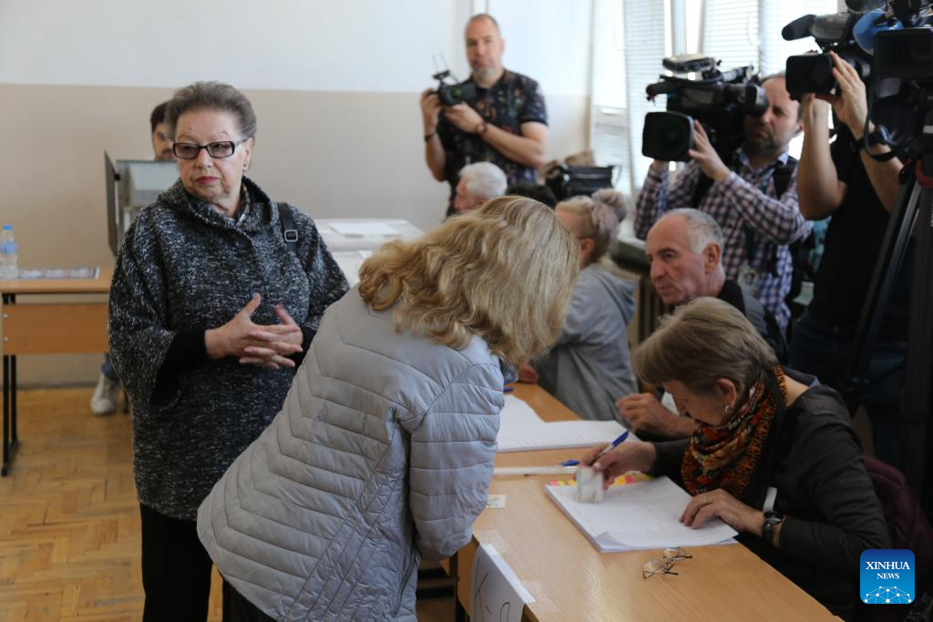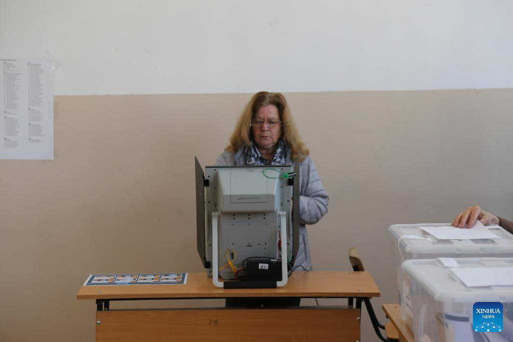 A voter casts a ballot at a polling station in Sofia, Bulgaria, April 19, 2026. Bulgarians went to the polls on Sunday to vote in the country's early parliamentary election, the eighth vote for the legislature in five years. Nearly 6.6 million voters are eligible to elect 240 lawmakers among more than 4,700 candidates from 14 political parties and 10 coalitions, as well as one independent candidate, according to the Central Election Commission. (Xinhua/Lin Hao)