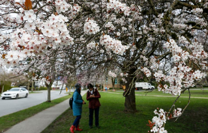 Cherry blossoms seen along street in Vancouver