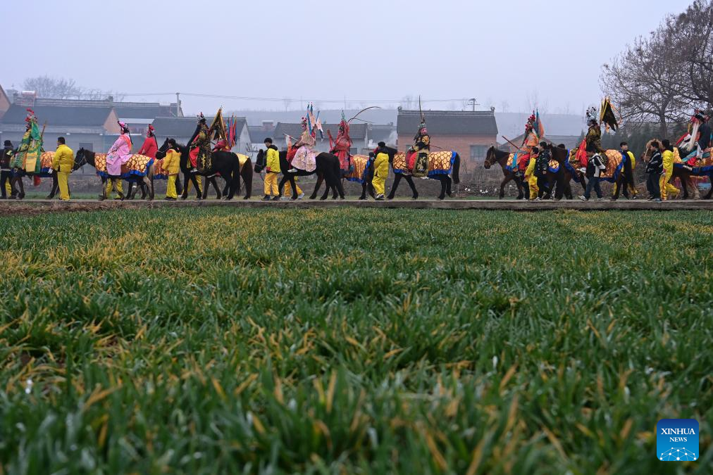 Performers attend a Shehuo parade in Huanghuayu Village in Longxian County of Baoji City, northwest China's Shaanxi Province, March 2, 2026.