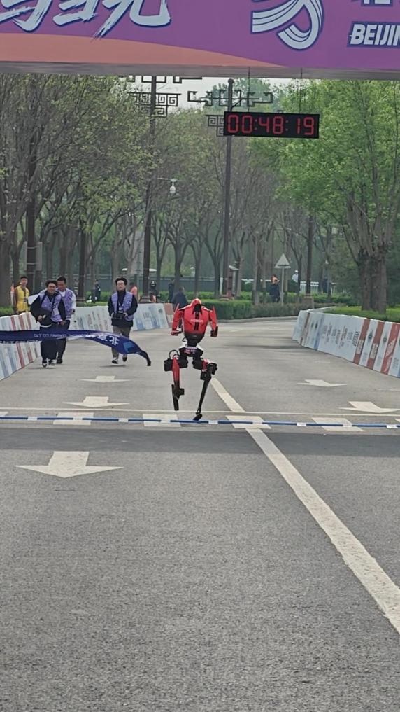 First robot crosses finish line at Beijing E-Town humanoid robot half-marathon