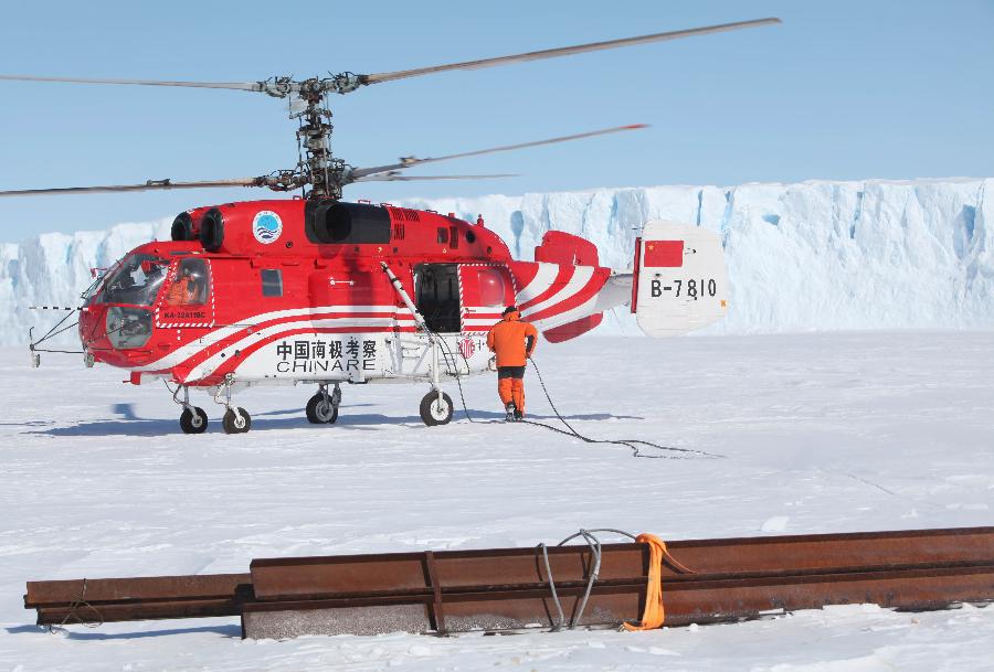Chinese Antarctic exploration team build bridges on floating ice