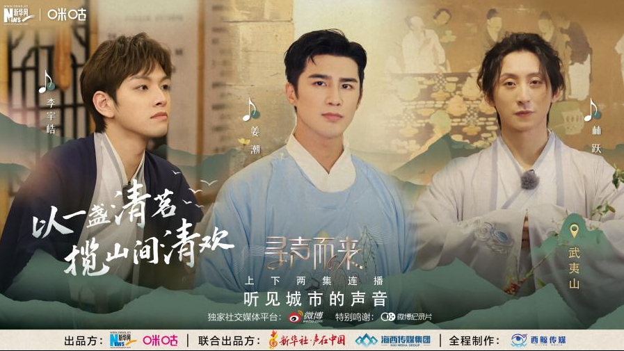 日前,由新华网、中国移动咪咕出品,中国移动独家冠名,新华社声在中国、海西传媒集团联合出品,西鲸传媒承制的旅行音综《寻声而来》第四站播出。寻声团嘉宾姜潮、林跃、李宇皓和乐队“旅行新蜜蜂”周骏来到世界文化与自然双重遗产之地——武夷山,体验钟灵毓秀的山水与源远流长的茶文化,创作属于这座城市的寻声主题曲。