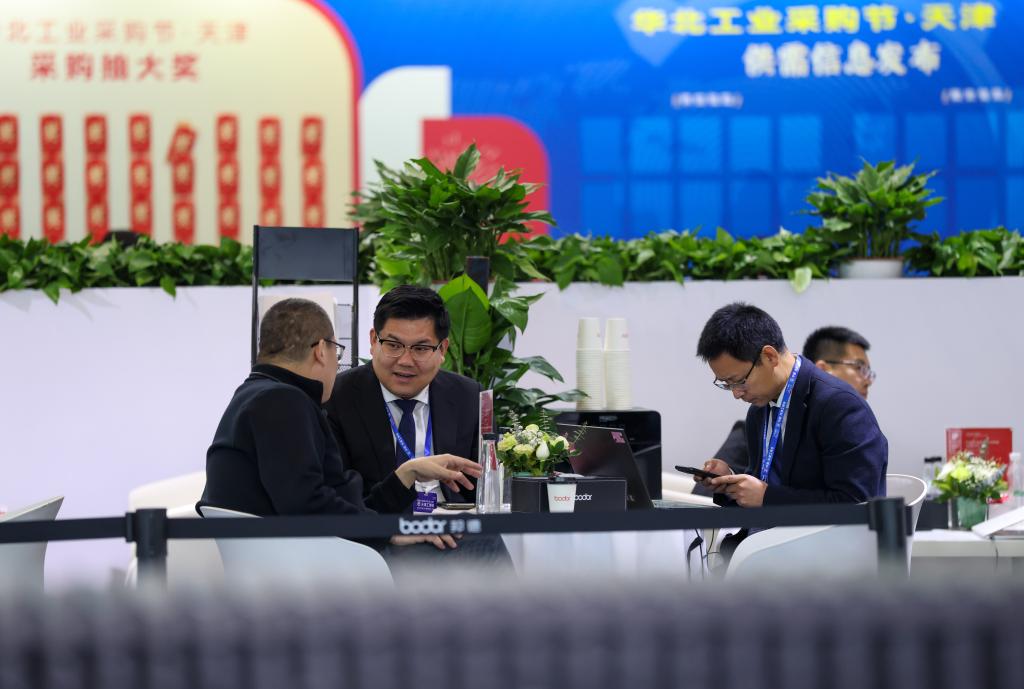 3月18日,客户在天津工博会上洽谈。