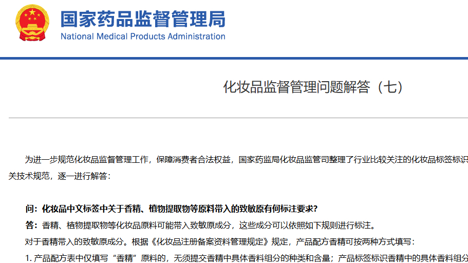化妝品監(jiān)督管理問題解答(七)