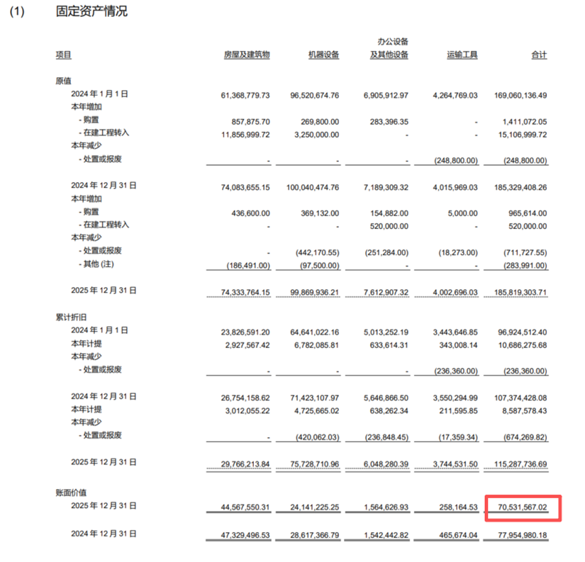 正大种业自2025年1月1日至2025年12月31日止年度固定资产数据。