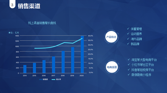 隨著產(chǎn)品形態(tài)和需求的變化,消費(fèi)者對(duì)保健食品的了解和獲取渠道也發(fā)生了改變。目前,線上銷售渠道逐漸升溫,淘寶等大型電商平臺(tái)、小紅書等社區(qū)平臺(tái)、抖音等短視頻平臺(tái)、微信微商小程序等成為主要的電商渠道,抖音短視頻和Keep成為大家獲取保健食品信息的主要方式。