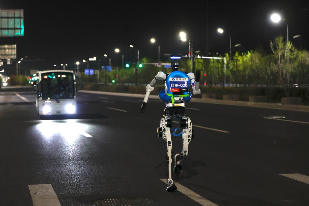 4月11日,一台机器人在测试活动中奔跑。新华社发(翟一凡摄)