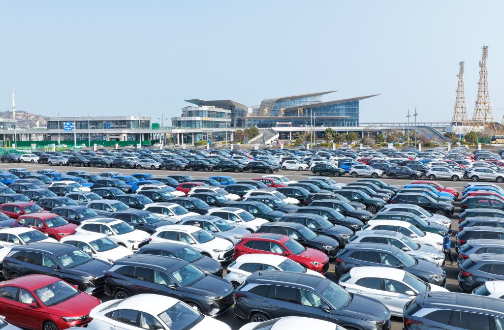 2026年3月10日拍摄的江苏省连云港港出口汽车堆场(无人机照片)。新华社发(王健民摄)