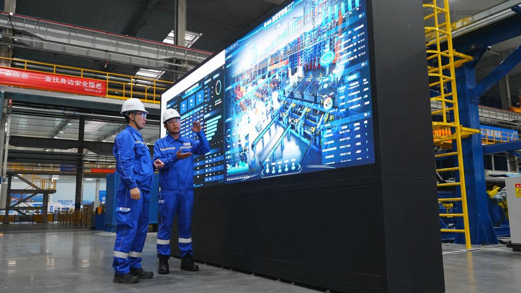 “这个数字孪生工厂系统一比一复刻物理工厂,实时读取设备参数。”油套管智能项目负责人沈国华指着屏幕说,“设备故障远程诊断缩短停机时间,瓶颈工序实时识别提升效率,这都是在降耗减碳。”