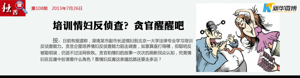情色反腐百發(fā)百中? 隨著二奶們一個個漂亮的迂回穿插,一個個瀟灑的短傳配合,一個個精彩的底線傳中和狡黠老道的反越位戰(zhàn)術,貪官們被射的是丟了官位、丟了金錢。情婦反腐,這是反腐進步了呢,還是腐敗進步了?