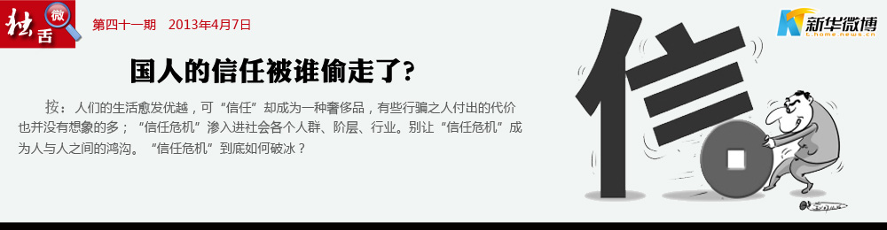 當“造假”成為“理所當然” 誰偷走了中國人的信任?一個段子說是在如今中國,賣包子的不吃自己做的包子,種菜不吃自己種的菜,賣藥的不敢吃自己生產(chǎn)的藥,賣奶粉則從不吃國產(chǎn)的奶粉。當造假作假、坑蒙拐騙成一種風氣,甚至成一種理所當然時尚,每個人能做的就只剩兩件事了:一個是只信自己,另一個是絕不信別人。