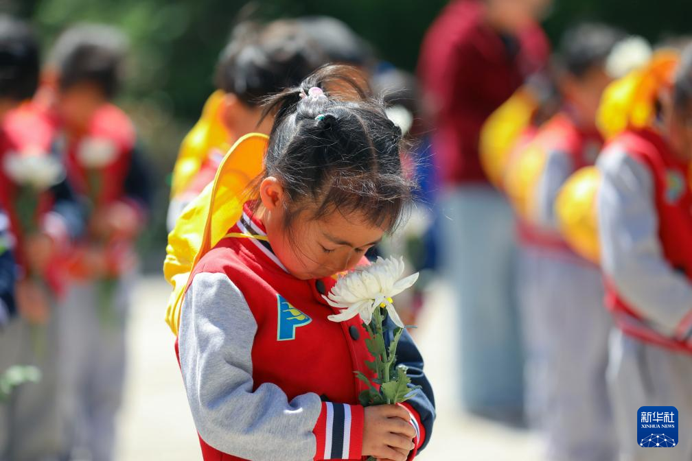 4月2日,云南省曲靖市陆良县小百户镇芹苗幼儿园的孩子们在青山烈士陵园开展祭奠英烈活动。