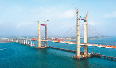 1月25日,湛江調(diào)順跨海大橋成功合龍。(新華社記者 劉大偉 攝)