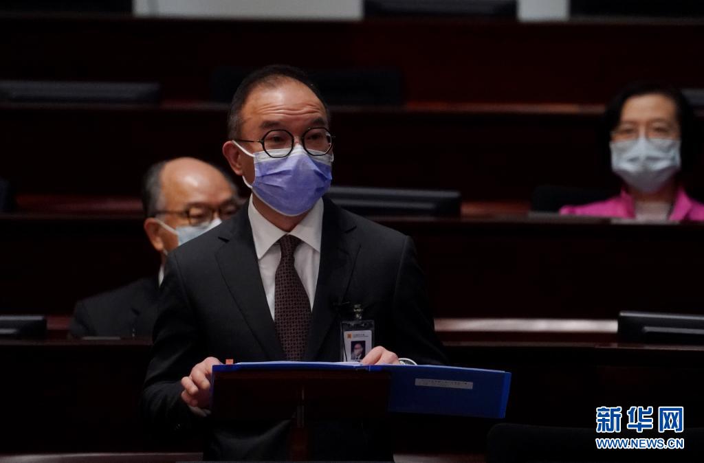 4月14日,香港特區(qū)政府政制及內(nèi)地事務(wù)局局長曾國衛(wèi)在立法會會議上?!⌒氯A社記者 呂小煒攝