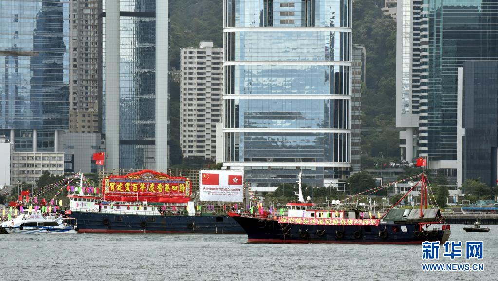 據(jù)介紹,今年“七一”,香港慶祝建黨百年、回歸24周年系列活動豐富多彩,包括100艘懸掛國旗、區(qū)旗的大型漁船在維港巡游,150輛車身印有主題標語的巴士、小巴穿梭在主要街區(qū),全港多家戲院播放電影《1921》等活動。