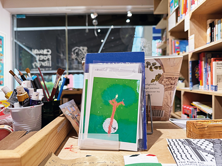 新加坡一家社区图书馆里,摆放着有贾娜画作的明信片