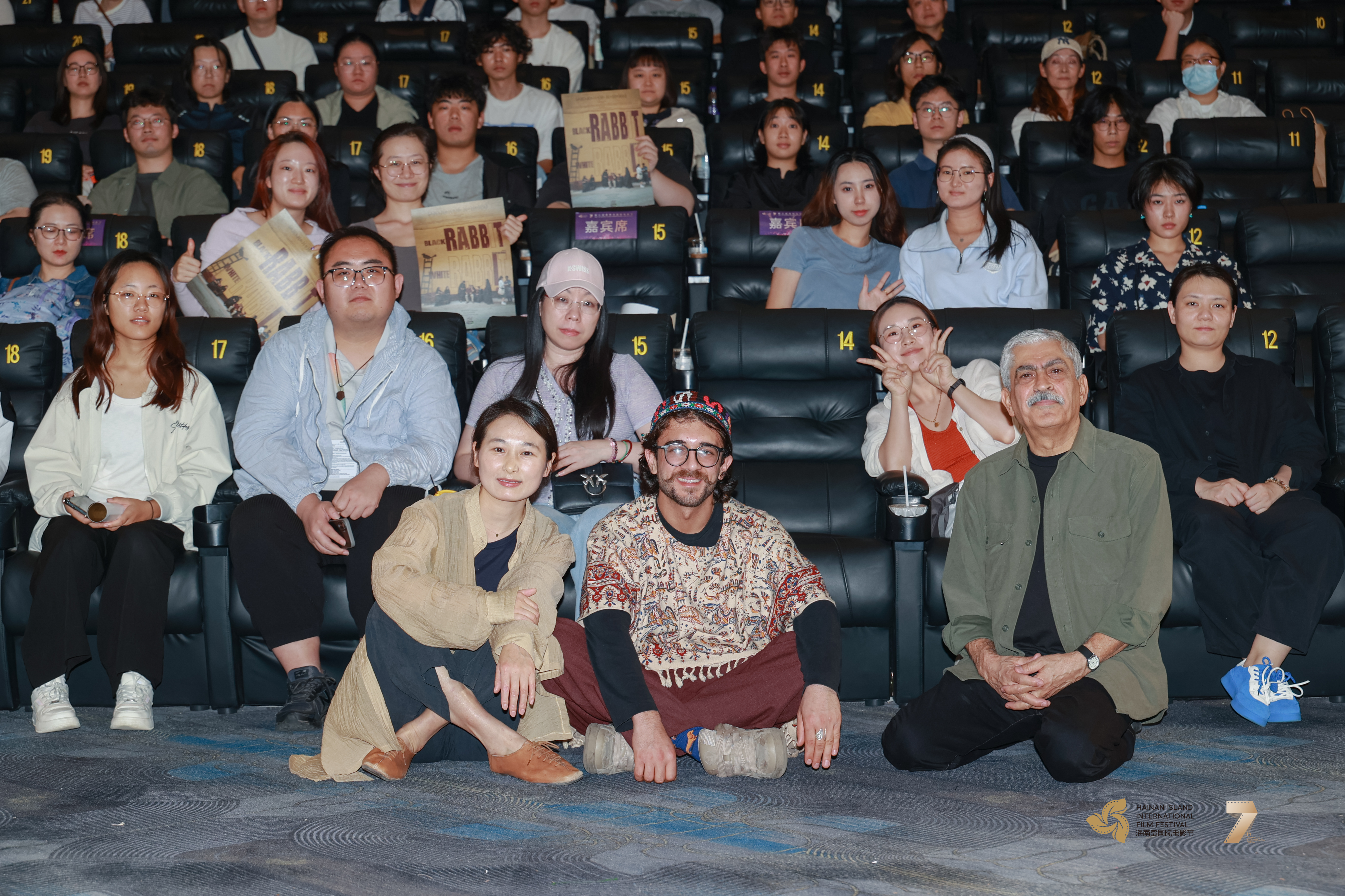 获得第七届海南岛国际电影节“金椰奖”最佳影片奖的《黑兔白兔》主创与观众合影(海南岛国际电影节供图)