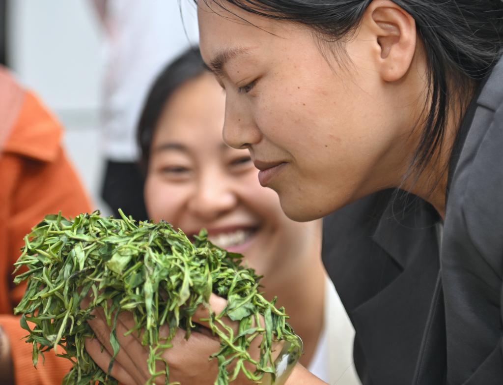 5月28日,在“乡村振兴 女子学堂”打古镇普照村教学点,学员在感受茶香。