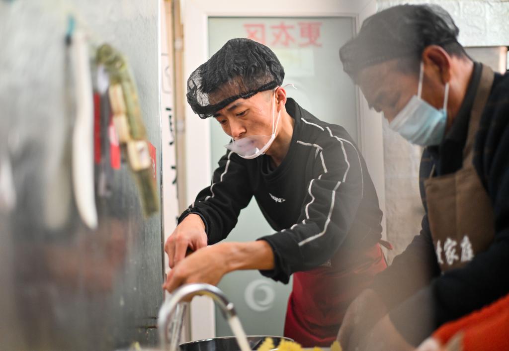 店长赵磊走起路来有些特别,因为多年前的一场意外致使他右腿截肢成了残疾人。靠着积极的心态和做麻辣拌的手艺,他咬牙撑起了自己的小店与生活。