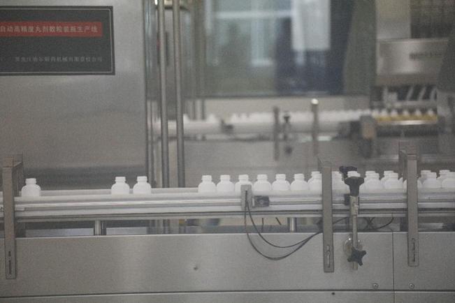 生產(chǎn)車間內(nèi),工人正在對(duì)藥品進(jìn)行加工