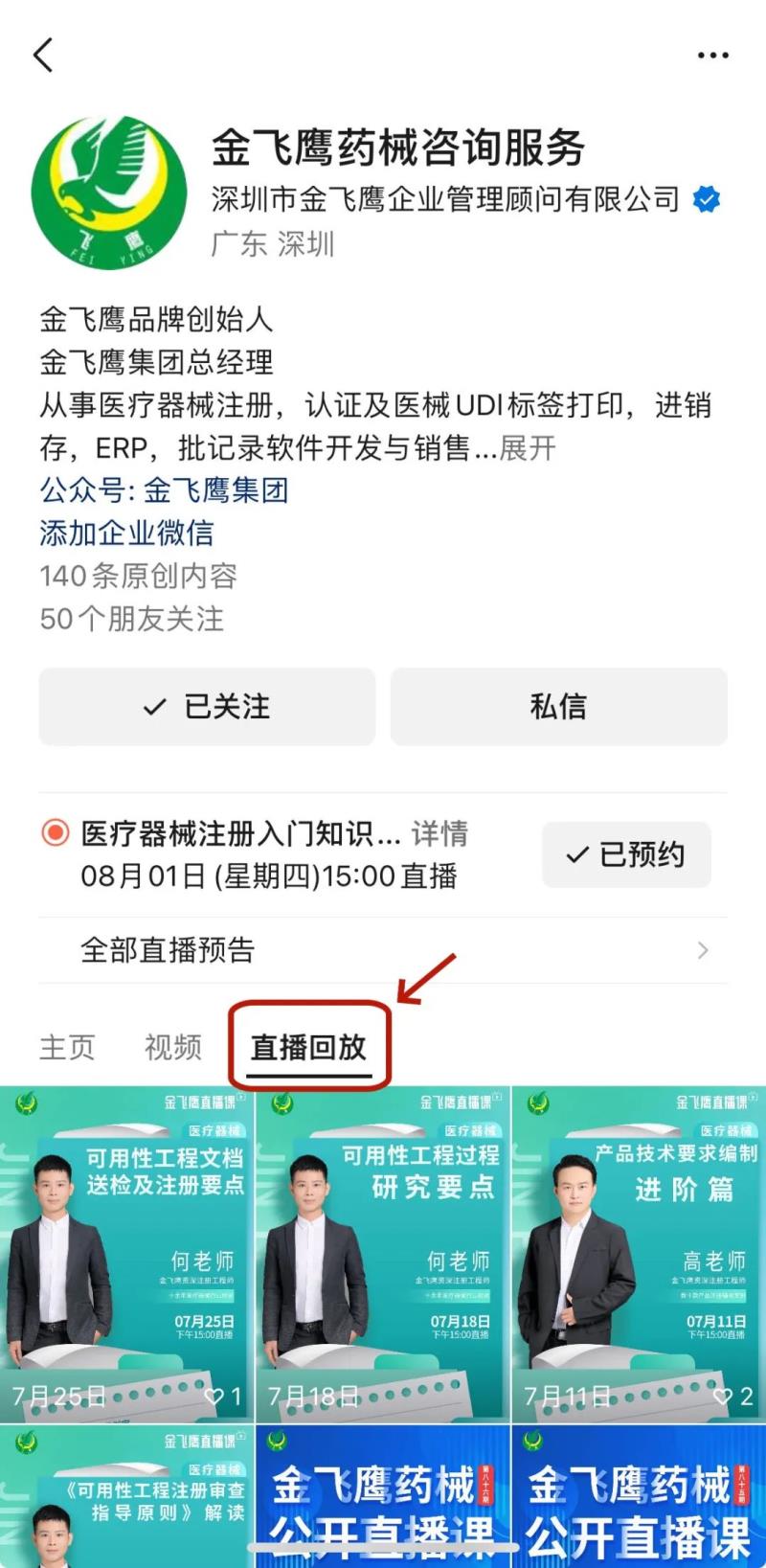 金飛鷹直播培訓簡介 金飛鷹直播培訓,是每周一次的固定培訓欄目,優(yōu)選金飛鷹國內(nèi)外資深注冊/項目老師定期為大家講解醫(yī)療器械注冊相關(guān)知識,解答大家在醫(yī)療器械注冊過程中的諸多疑問。 此前我們已為大家?guī)硇掳驷t(yī)療器械生物學評價標準、新版醫(yī)療器械風險管理標準、醫(yī)療器械軟件注冊、新版醫(yī)療器械經(jīng)營質(zhì)量管理規(guī)范等共計99次線上培訓課程,有興趣的可點擊視頻號直播回放進行查看~另外大家也一定很關(guān)注接下來的培訓主題,相關(guān)培訓預(yù)告我們會陸續(xù)添加至視頻號,請大家持續(xù)關(guān)注哦! 劃重點 往期直播培訓課程支持回放,關(guān)注“金飛鷹藥械咨詢服務(wù)”視頻號并點擊視頻號主頁,即可查看“直播回放”哦~ 醫(yī)療器械注冊咨詢認準金飛鷹 深圳:0755-86194173 廣州:020 - 82177679 四川:028 - 68214295 湖南:0731-22881823 湖北:181-3873-5940 江蘇:135-5494-7827 廣西:188-2288-8311 海南:135-3810-3052