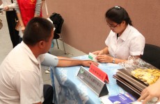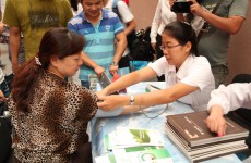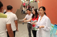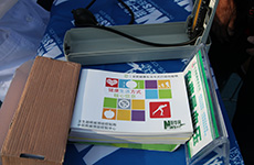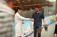 新華網(wǎng)工作人員在進(jìn)行健康手冊(cè)的發(fā)放 |