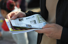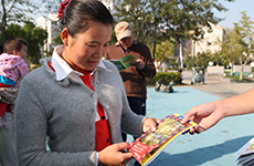 新華網(wǎng)工作人員在發(fā)放健康手冊(cè) |