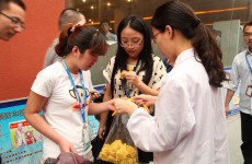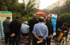 新華網(wǎng)工作人員在為業(yè)主介紹健康知識(shí) |