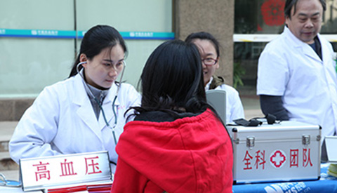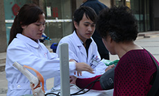 市疾控的醫(yī)生在為市民測(cè)量血壓 |