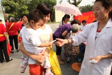 市疾控的醫(yī)生在發(fā)放愛(ài)心小禮品 |