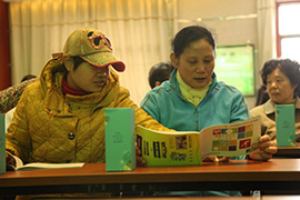 現(xiàn)場(chǎng)參加人員在仔細(xì)的看健康手冊(cè)