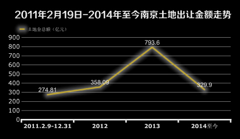 南京土地市場真正開始發(fā)力始于2012年,該年共成交75幅地塊,實際出讓面積為392.65萬平方米,成交總價為358.09億元,相比2011年全年成交金額(345.19億元)總價上漲3.7%。 而2013年年初“國五條”的出臺更是為全年土地市場火熱埋下伏筆。據(jù)新華網(wǎng)統(tǒng)計,2013年南京土地市場創(chuàng)下“招拍掛”以來土地成交金額的新高,共累計成交土地414.5萬平方米,總成交金額793.6億元。 [詳細]