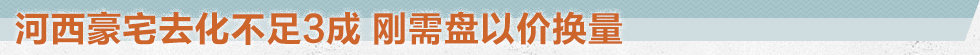 房價飛漲的河西板塊現(xiàn)在終于冷靜了。買不到的“神盤”——海峽城現(xiàn)如今讓購房者有了挑選的余地;純新盤五礦崇文金城即便以低于預期1500元/平方米的價格入市,去化也僅有8成;豪宅代表華潤悅府門前更是冷清,開盤一個半月去化不足3成。