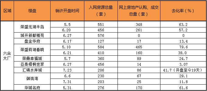 根據(jù)網(wǎng)上房地產(chǎn)的統(tǒng)計數(shù)據(jù)顯示,六合片區(qū)內(nèi)樓盤的實際銷量呈現(xiàn)出了兩極分化狀,當?shù)亍褒堫^”企業(yè)榮盛旗下各盤依舊不愁賣,但除此之外,約計八成情況不容樂觀,超過一個月的累計去化率不足四成。更有一盤,6月底領到的預售房源,至今無一套房源進賬。