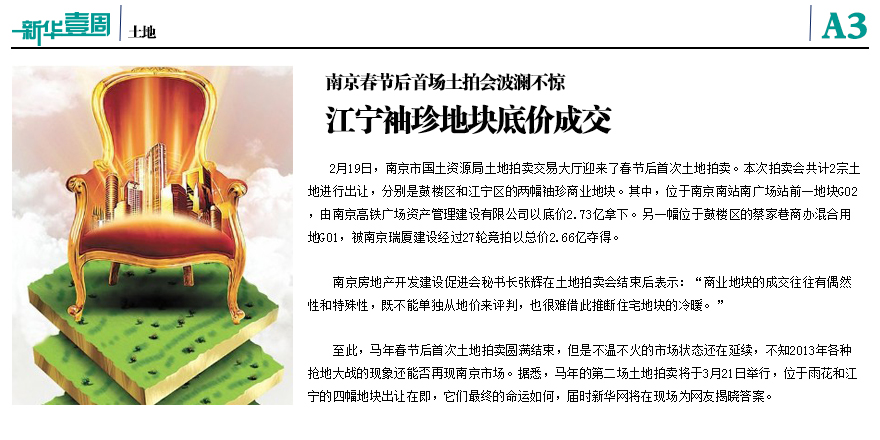 南京春節(jié)后首場土拍會波瀾不驚