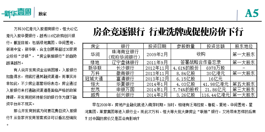 房企競逐銀行業(yè) 洗牌或促房價下行