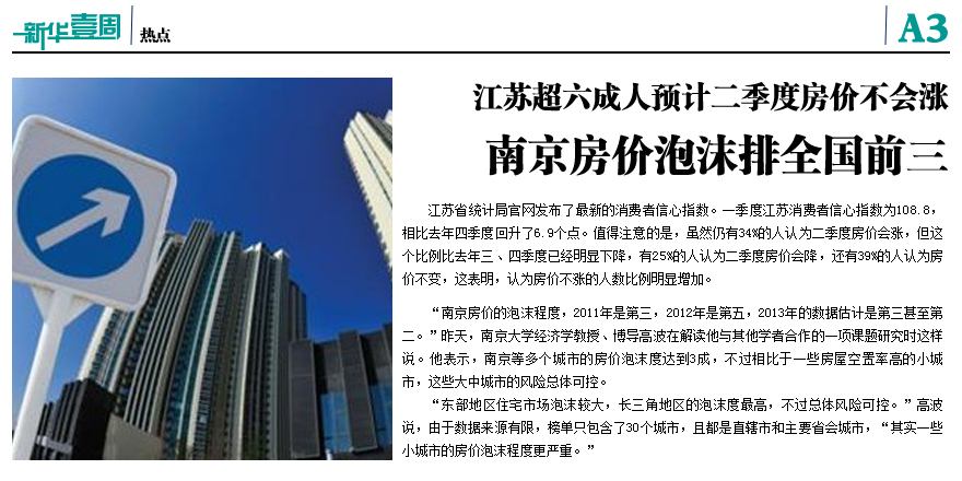 江蘇超六成人預計二季度房價不會漲