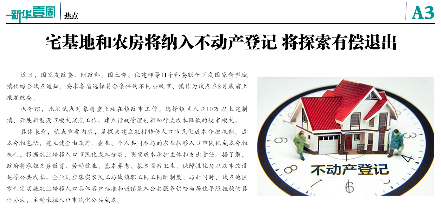 宅基地和農(nóng)房將納入不動產(chǎn)登記